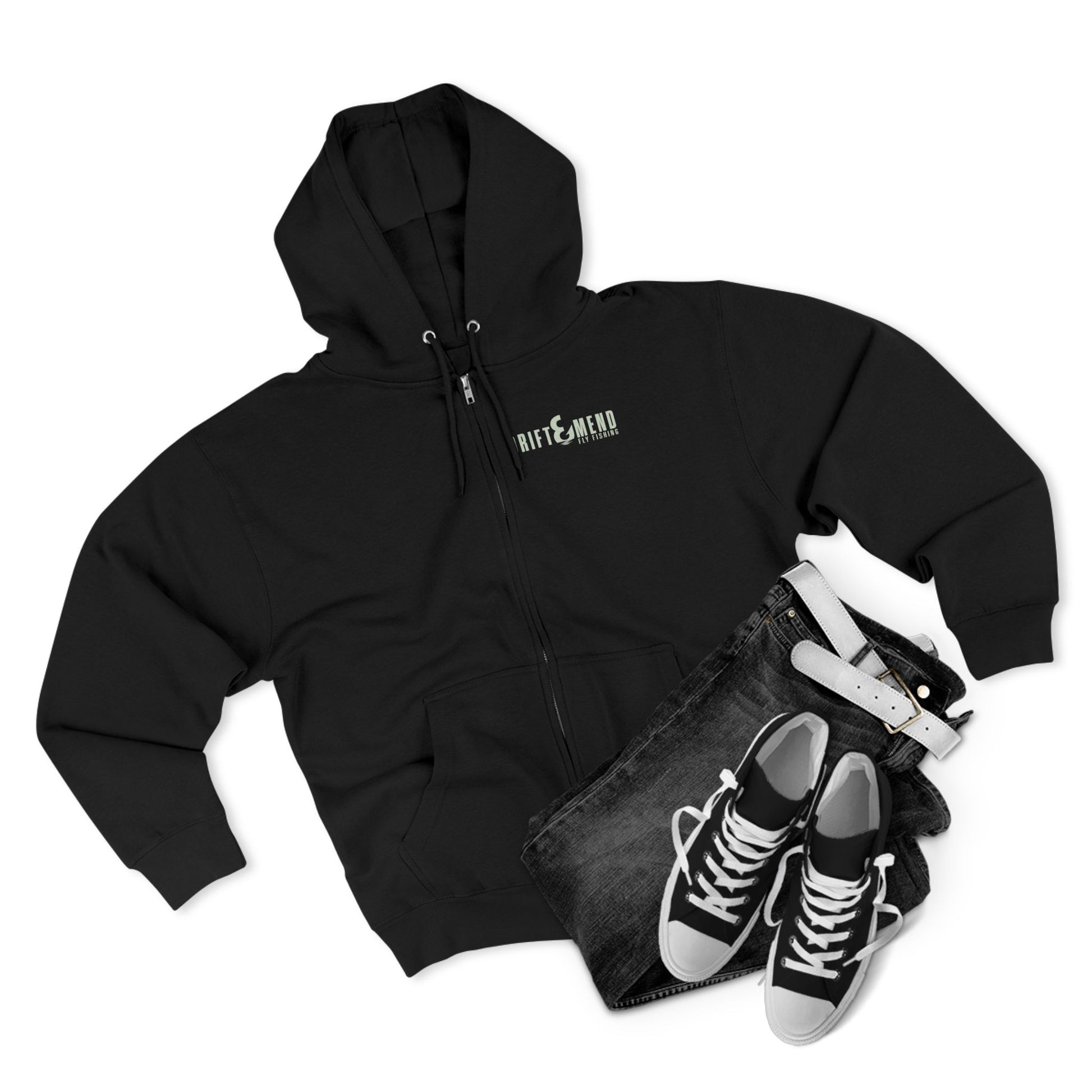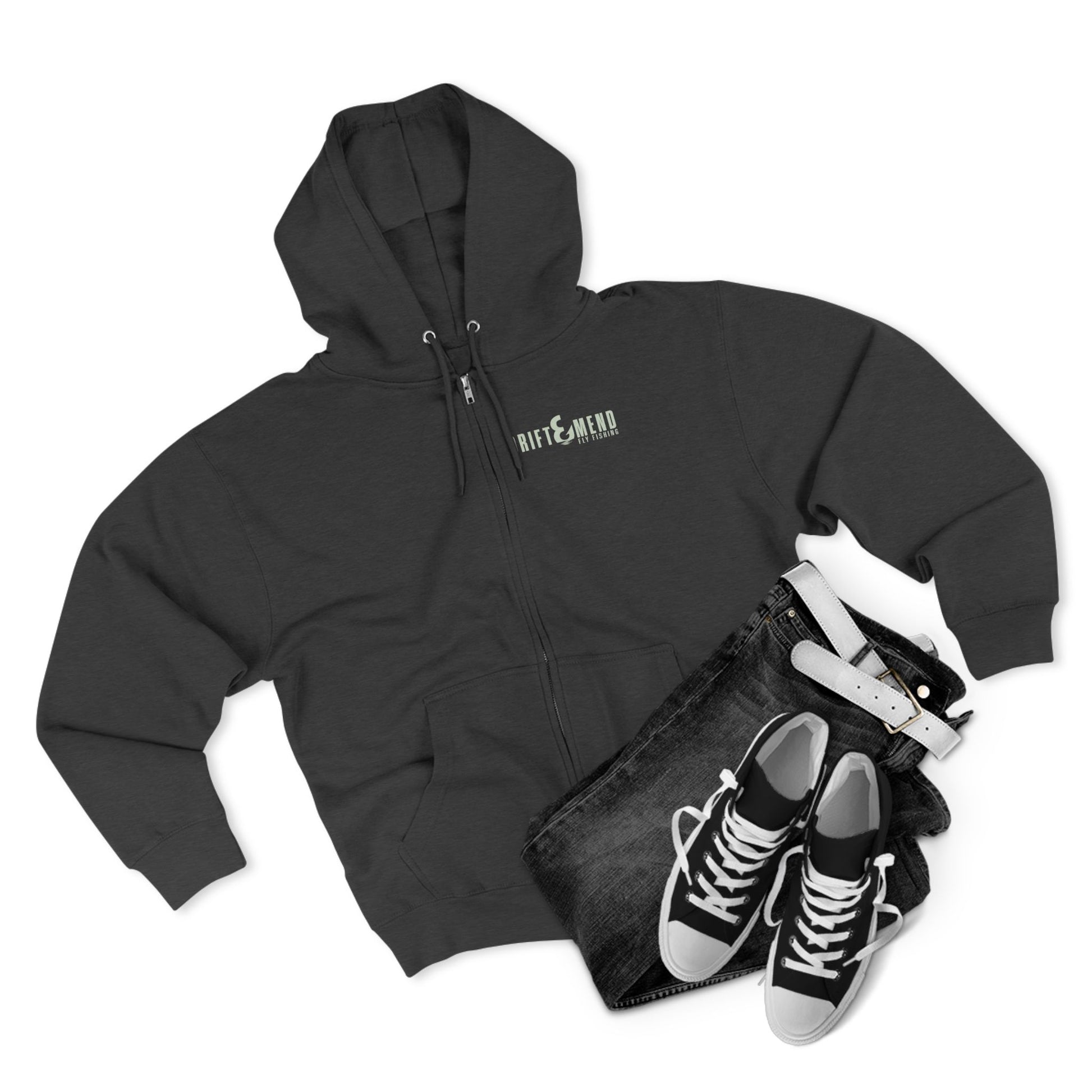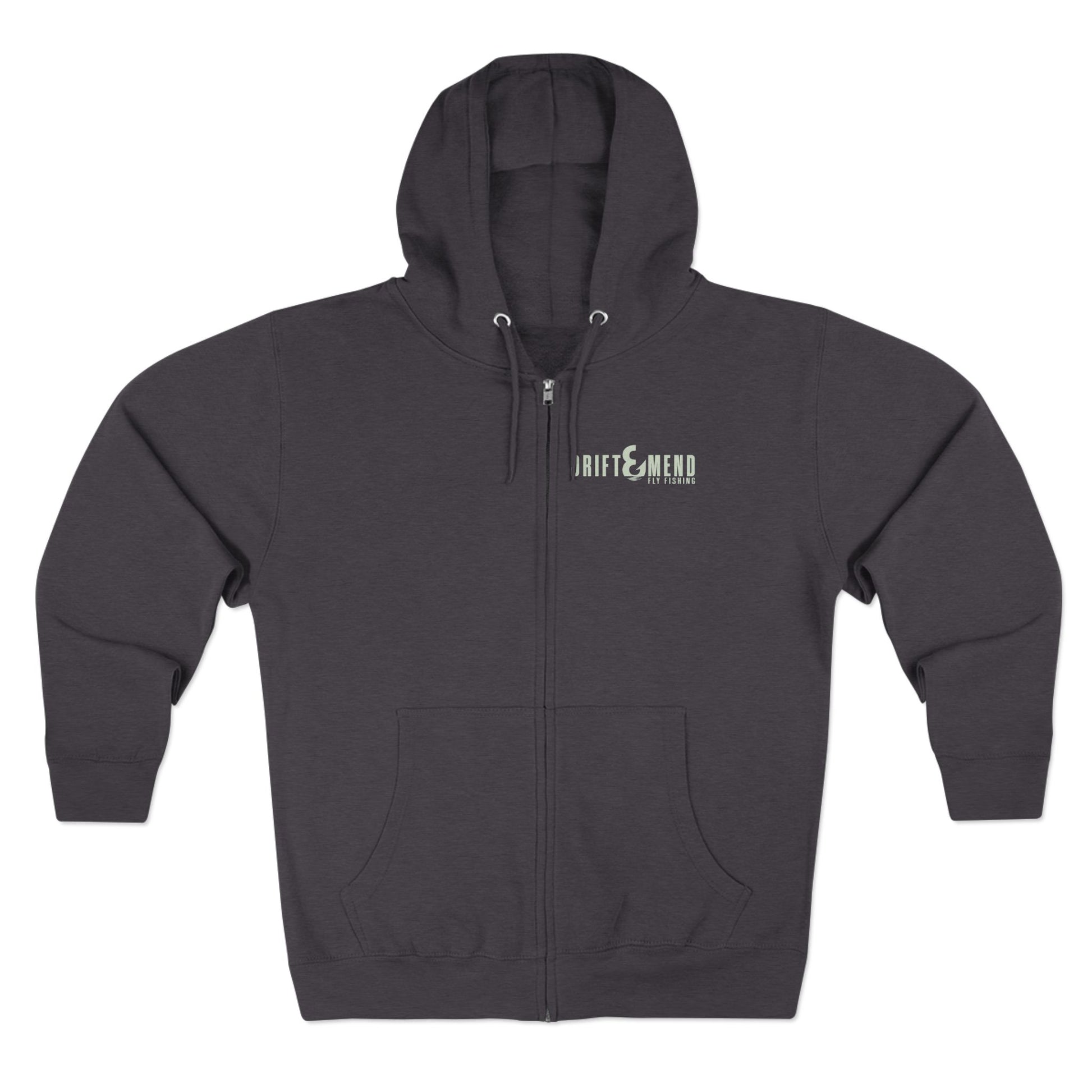 Fly fishing is often a waiting game. It teaches you patience and the beauty of slowing down. As the saying goes, good things come to those who wait. However, those of us who have waded into a river know that therein lies the real magic of fly fishing. Bring that magic with you with this full zip hoodie.